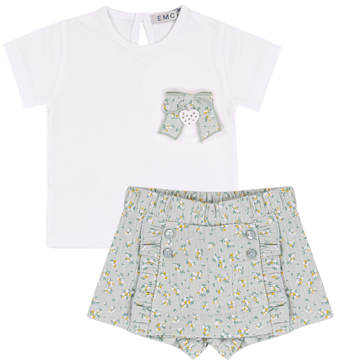 Babysuit EMC 2-piece white/green with flowers