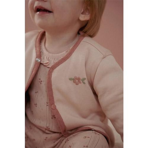 The soft jacket has a beautiful Fairy Garden print on one side and a solid Pink Blush color on the other.