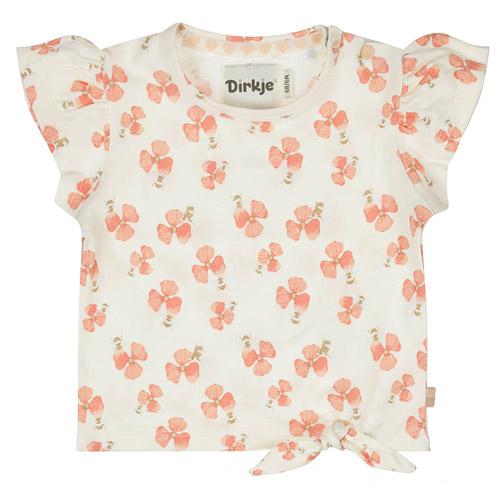Summery and playful, this off-white Dirkje t-shirt with peach-orange flowers is a cheerful addition to the wardrobe.