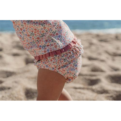 This adorable swim diaper combines functionality with a cheerful, summery look full of soft flowers and is perfect for sunny days at the pool or the beach.