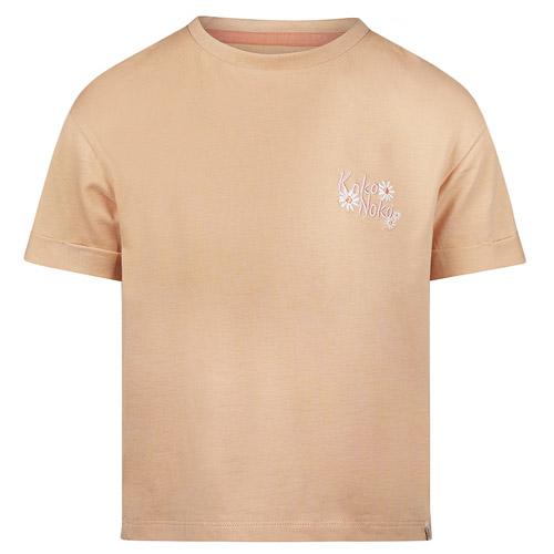 This Koko Noko t-shirt for girls, in a warm sand colour, is a comfortable and stylish choice for summer.