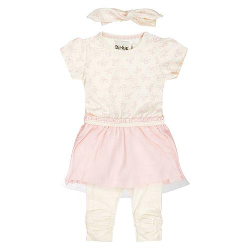 Combinaison Dirkje 3 pièces, robe, pantalon et nœud blanc/rose