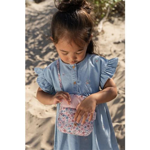 Son aspect denim doux, ses joyeuses fleurs brodées et ses volants espiègles rendent chaque jour unique.