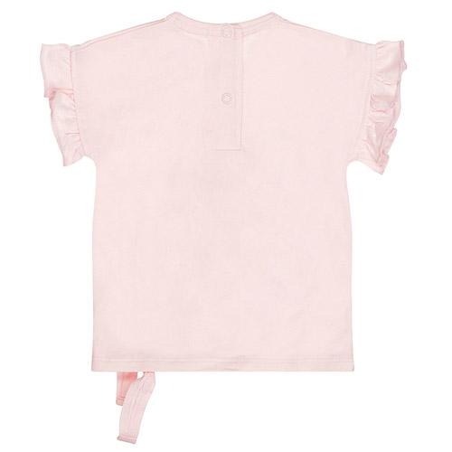 Les manches sont ornées de volants et un noeud en bas apporte une touche de douceur et de fantaisie à ce t-shirt pour fille.