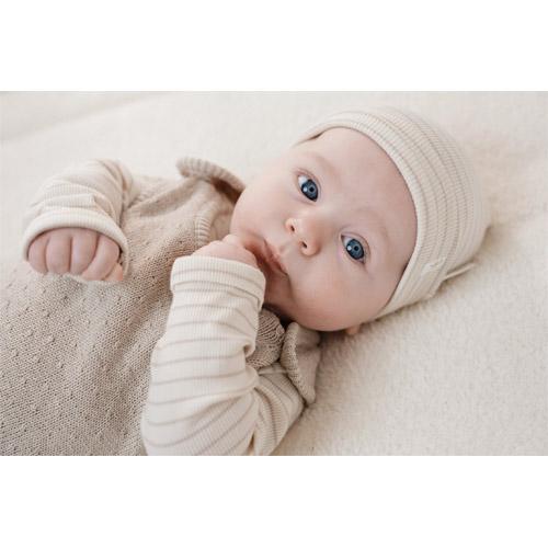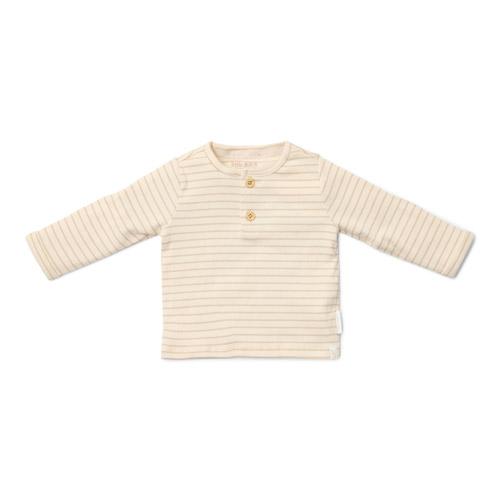 Ce t-shirt à manches longues, orné de fines rayures couleur sable et de jolis boutons imitation bois, apporte une touche de charme à la tenue de votre enfant.