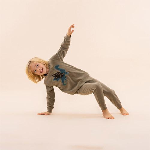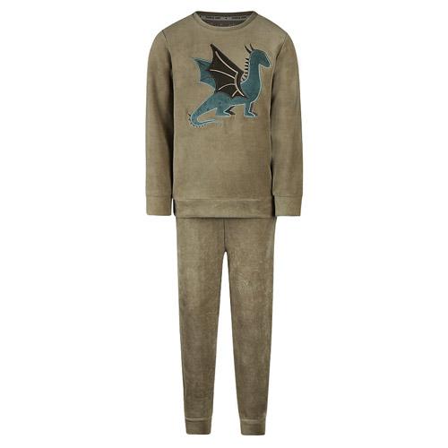 Het pyjamashirt is versierd met een gave draakapplicatie.