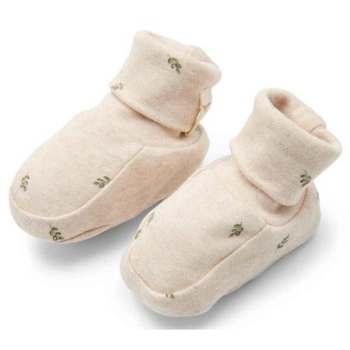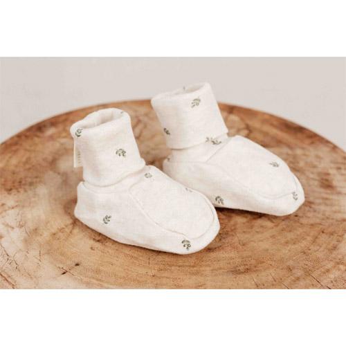 The cute print of green leaves on a sand-coloured melange background gives the slippers a natural look.