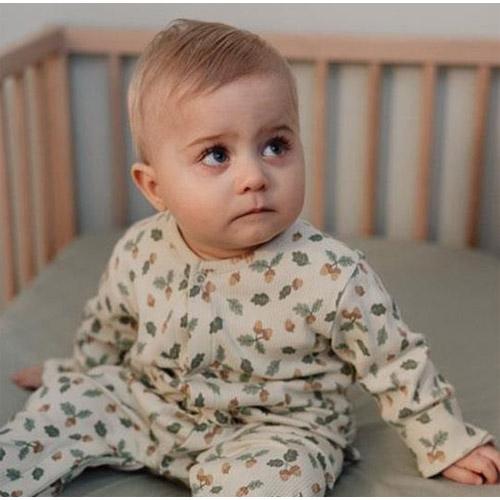 Crafted from comfortable ribbed fabric, this onesie features a charming acorn and leaf print, perfect for little nature lovers.