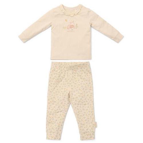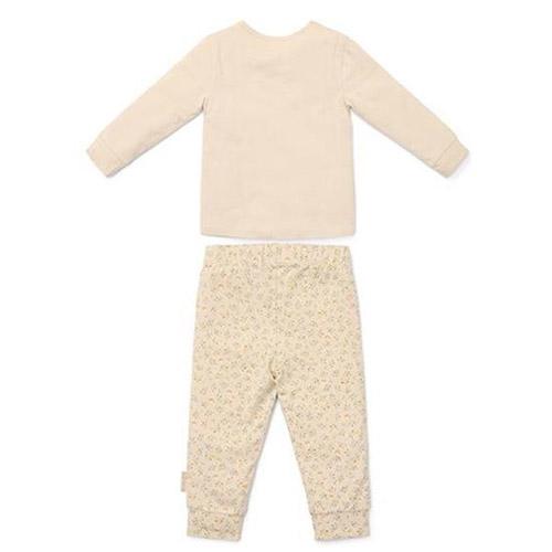 These pajamas consist of trousers with a charming print of small leaves and a shirt with a cute sleeping deer.