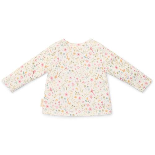 This long-sleeved t-shirt features an adorable all-over print of flowers, leaves, birds, hedgehogs, and more.