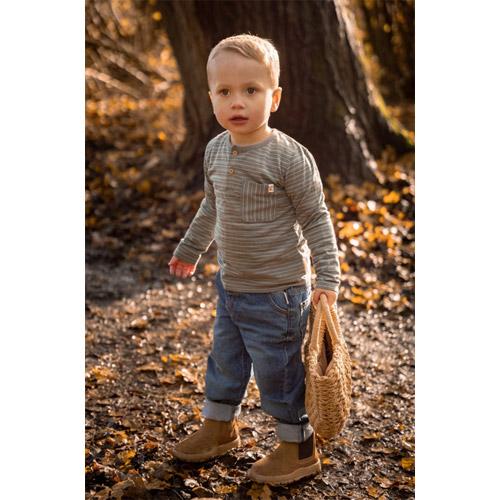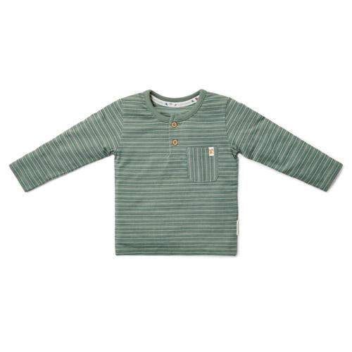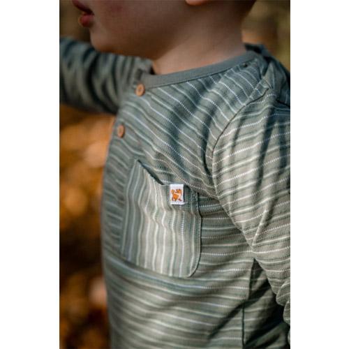This long-sleeved shirt from Little Dutch is not only a feast for the eyes with its fine multicolored stripes and cool wood-look buttons, but also wonderful to wear.