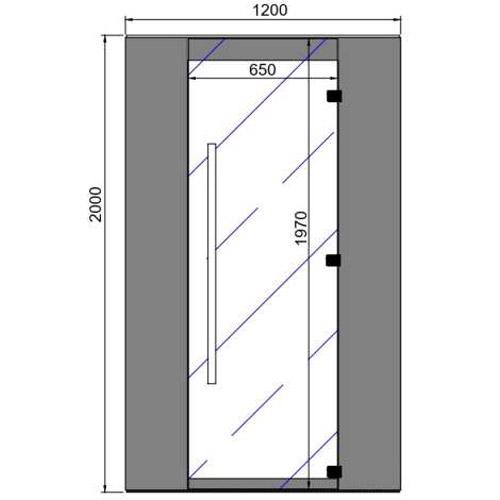 - Bright door made of safety glass 1970 mm x 650 mm x 8 mm with lacquered hardware to match the MDF colour.