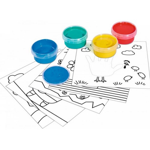 With the 10 templates included and the 4 different colours of finger paint, you have everything you need to create your first real work of art with your own hands.