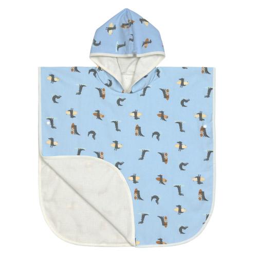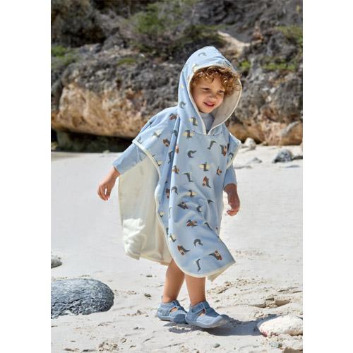 - Quick-drying and reversible hooded bathing poncho.