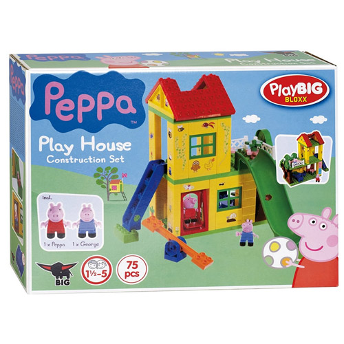 The set includes a house with 3 floors, a slide, swing, seesaw, table and chairs and the play figures Peppa and George.