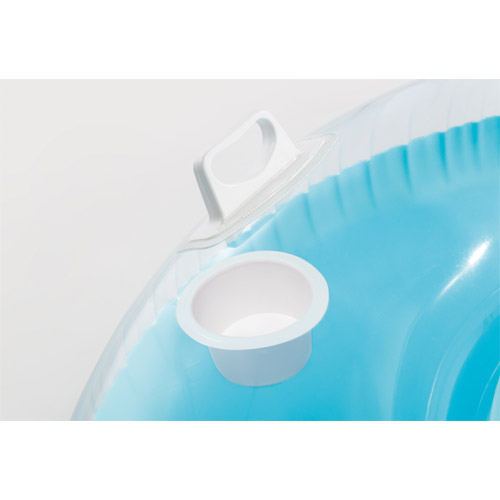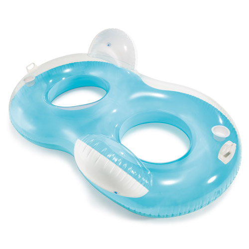 Double lounger with transparent seat, two drinking cups and handles, with built-in backrests.