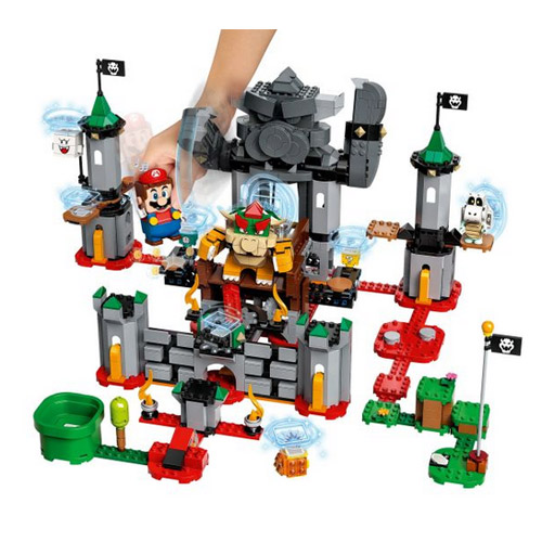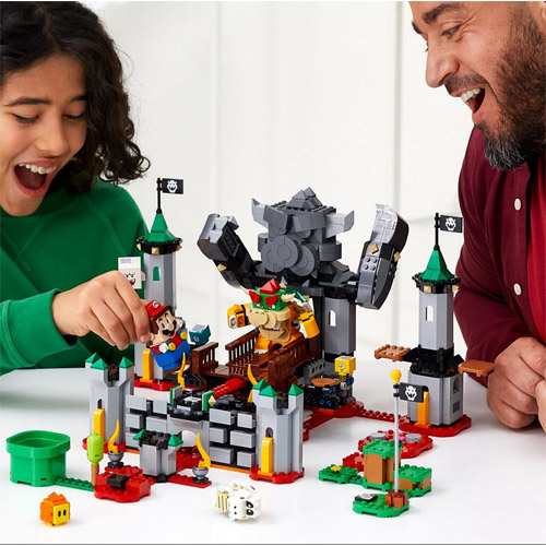This castle playset is a great gift for children to add to their Lego Super Mario starter set (71360) and features towers with spinning an shaking platforms, flippers to raise Bower's arms and access the time block and then shake the bridge until it falls over.