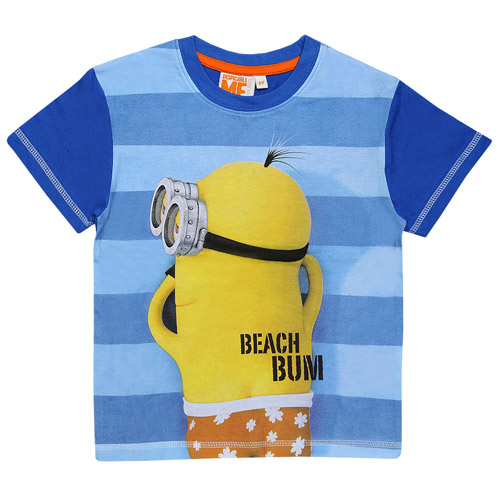 Striped T-shirt in blue with an image of Kevin from the Minions.