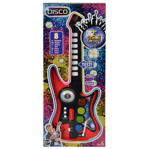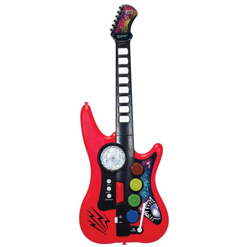 Press the white buttons on the guitar neck and different guitar sounds come out!