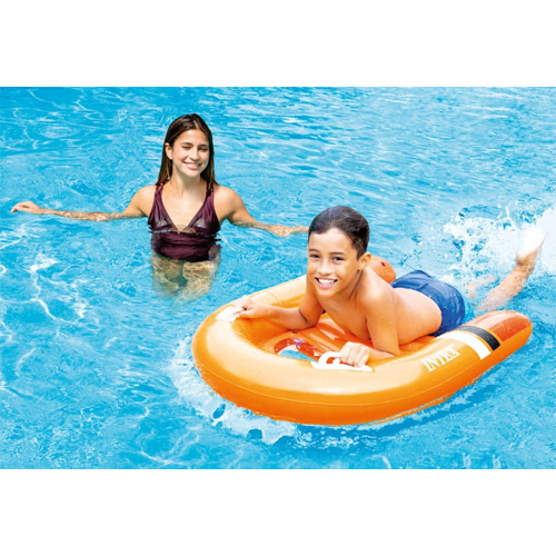 Children are sure to catch waves on this orange surfboard with window from Intex.