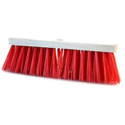 Voor het opvegen van bladeren zijn deze straatvegers prima toepasbaar, ze hebben lange harde borstelharen met een houten rood geverfde rug.