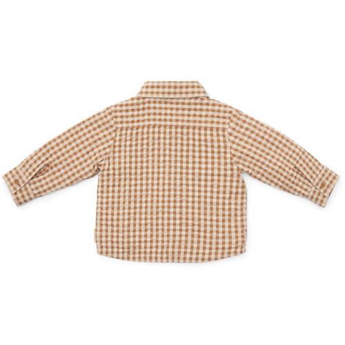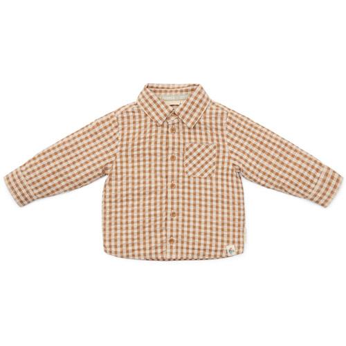 This cool long sleeve shirt has a beautiful brown and white check pattern.