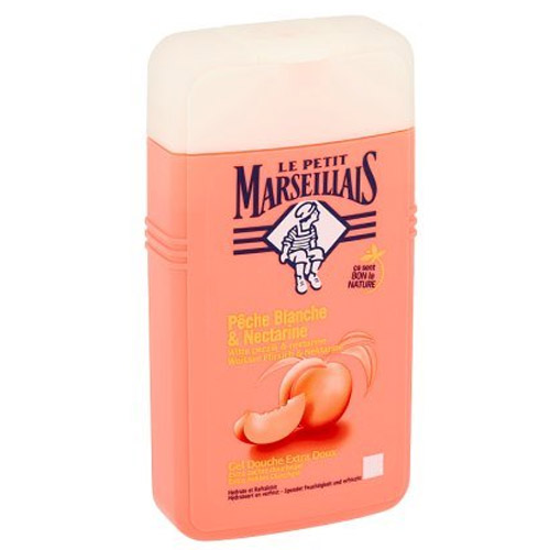 Le gel douche à la pêche blanche et la nectarine du Petit Marseillais lave en douceur votre peau, grâce à sa mousse légère qui libère un parfum frais et gourmand.