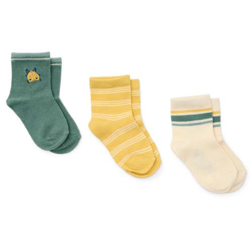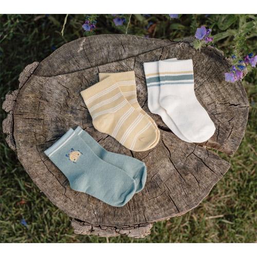 A green pair with a cute little bug, a yellow and white striped pair and a white sporty pair.