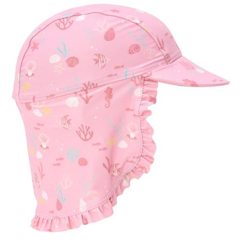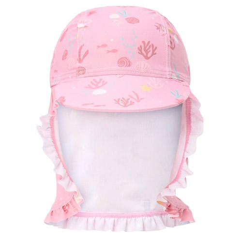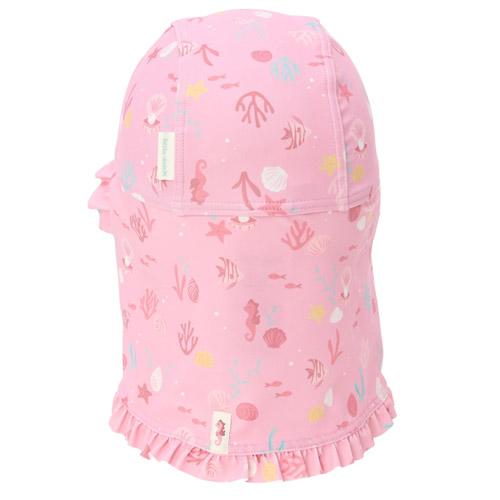 Whether splashing in the pool or building sandcastles at the beach, your little one will stay protected and stylish in the Ocean Treasures design, showcasing a delightful blend of light pink with sea horses, coral, and seashells.