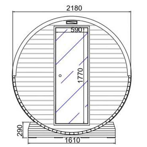 Outside sauna BARREL 240 cm long, diam. 215 cm ayous