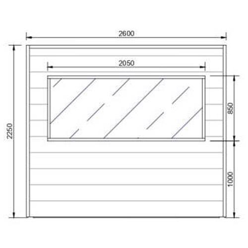 - Double-glazed, tempered glass 2200 mm x 800 mm at the front.