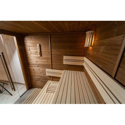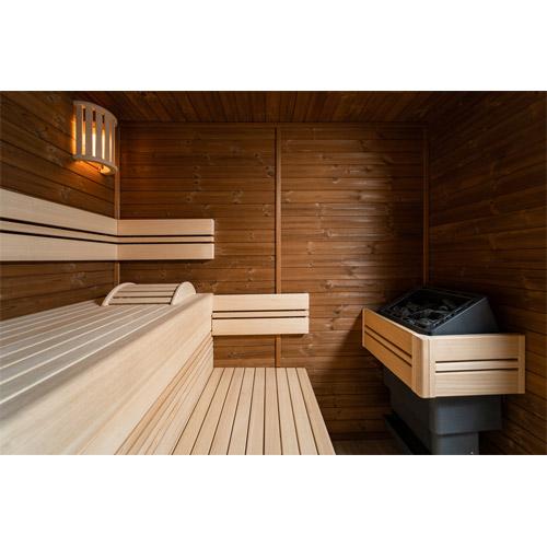 The sauna cabin promotes blood circulation and respiration, and is made of durable wood.