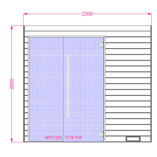 - Bright glass door 179 cm x 69,1 cm in tempered glass, 8 mm thick.
