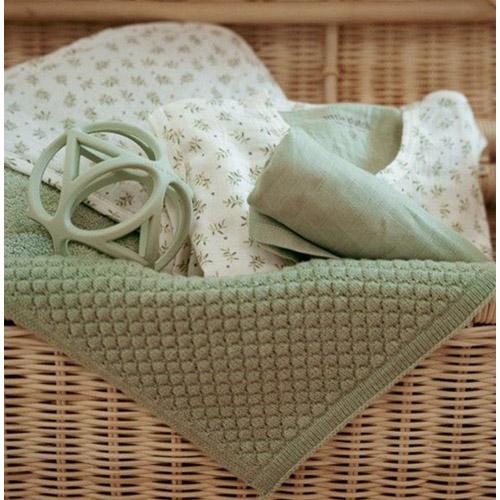 Knitted bassinet blanket Little Dutch Pure Sage 100 cm x 70 cm
