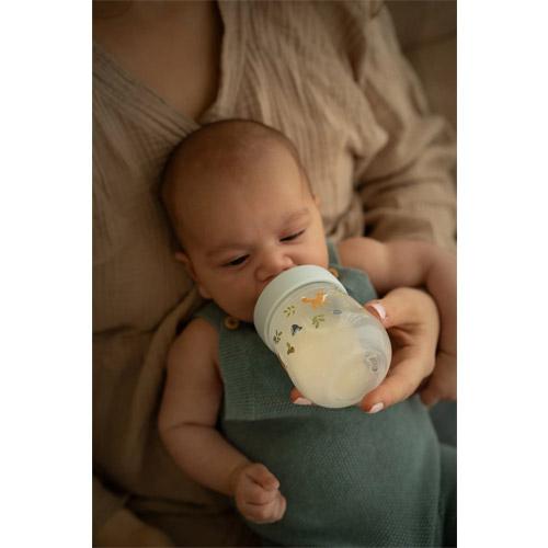 The Mepal Mio 165 ml baby bottle with the sweet Forest Friends print by Littel Dutch is designed for comfort and ease during feeding.