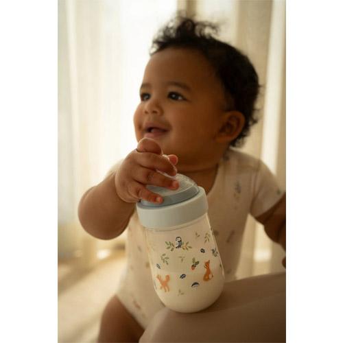 The 240 ml Mepla Mio bottle, adorned with Little Dutch's charming Forest Friends design is designed for comfort and ease during feeding.