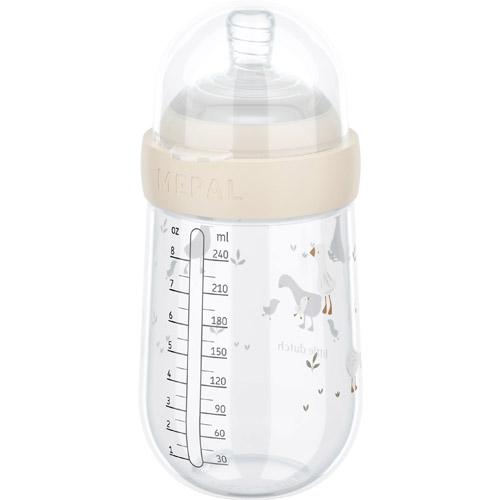 The Mepal Mio 240 ml baby bottle with the sweet Little Goose print by Little Dutch is specially designed for comfortable feeding.