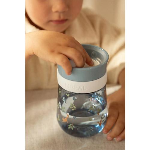 The Mepal Mio 360 degréé cup, featuring a charming Forest Friends print by Little Dutch, is specially designed to help toddlers learn to drink on their own.