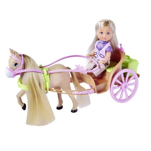 De koets is 28 cm lang en Evi is 12 cm hoog.