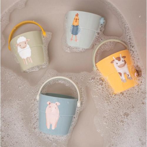 For example, there is a bath cup with a sheep, pig, cow and a rooster.