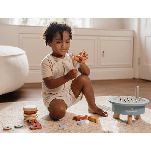 This 34-piece wooden barbecue play set includes BBQ tools, a hamburger bun and a removable grill so that it looks real and your little one can fully recreate the grilling process.
