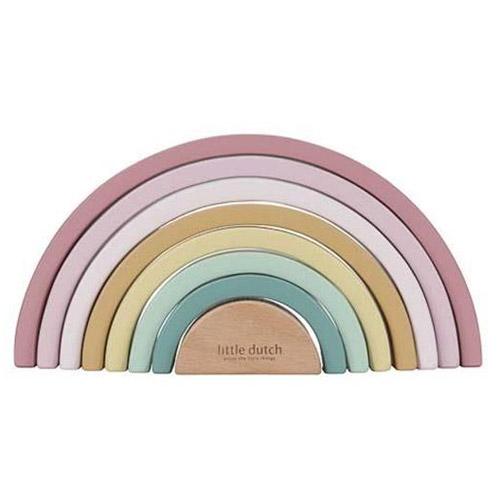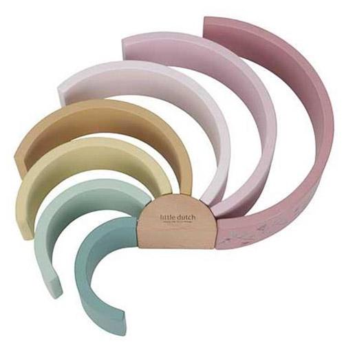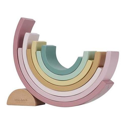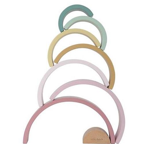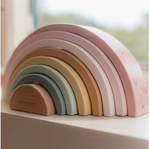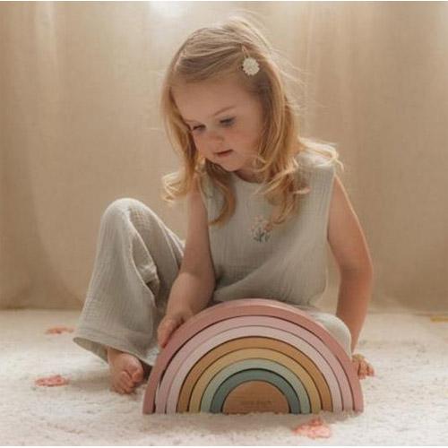 This wooden rainbow stacker encourages imaginative play and promotes fine motor skills.