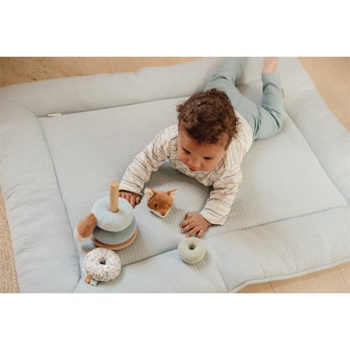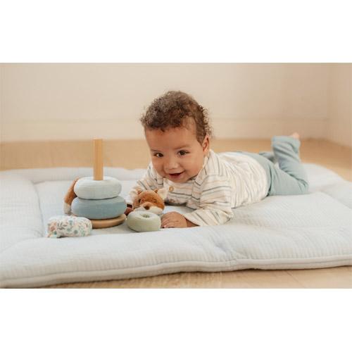 Stack the rings on the wobbly base and let the fox dance and spin!