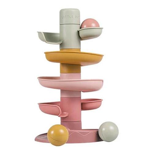 The spiral tower contributes to the development of hand-eye coordination and teaches little ones about cause and effect, making it both fun and educational to play with.