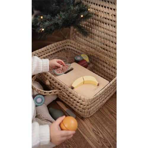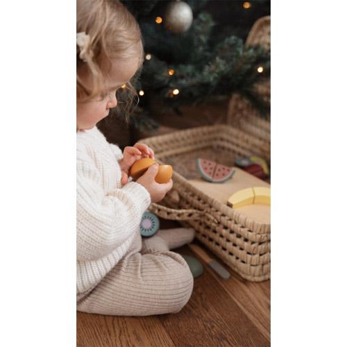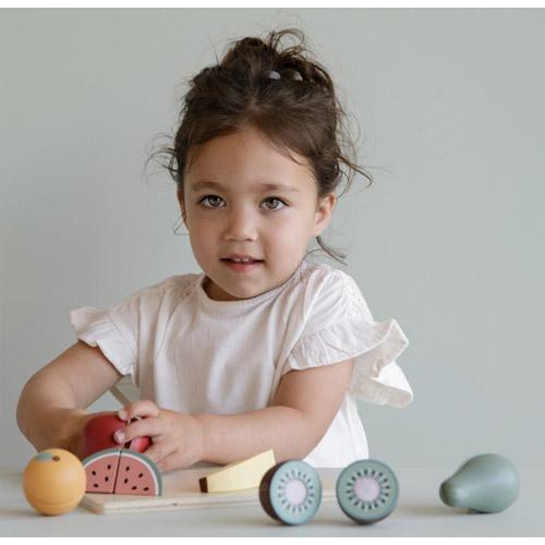 Your child will love to imitate you when making a fruit snack with this wooden cutting fruit.