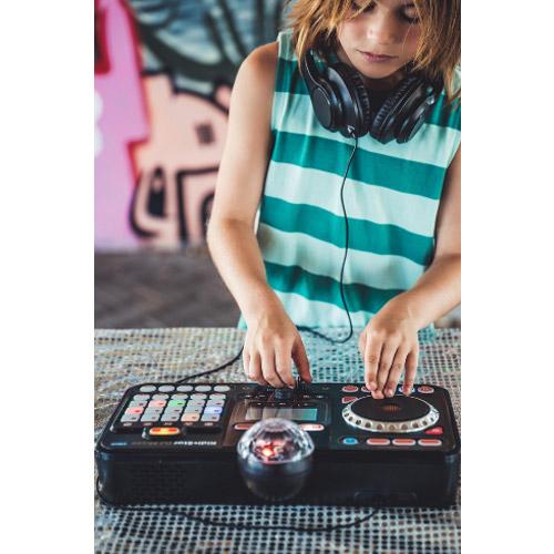 DJ Mix turntable for creating and recording your own soundtracks, with headphone jack, built-in speaker, and Bluetooth connection.