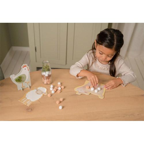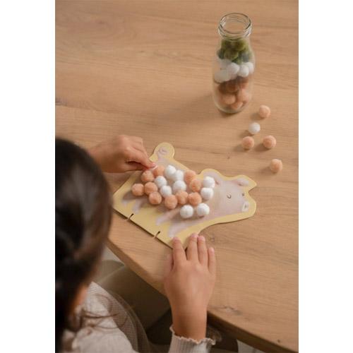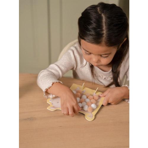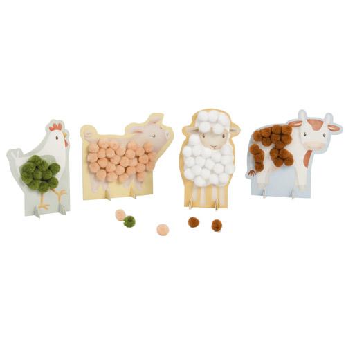 Stick the pompom with the right color on the sheep, chicken, cow and pig and make the most beautiful paintings!