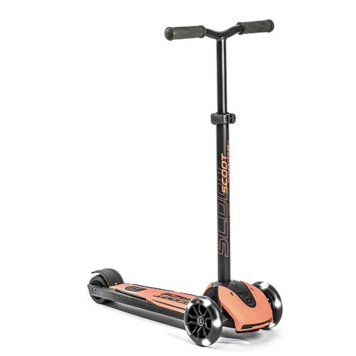 This luxurious, lightweight scooter is equipped with LED lights in the wheels.