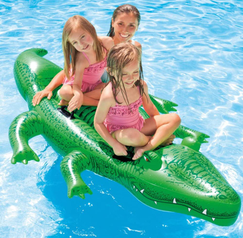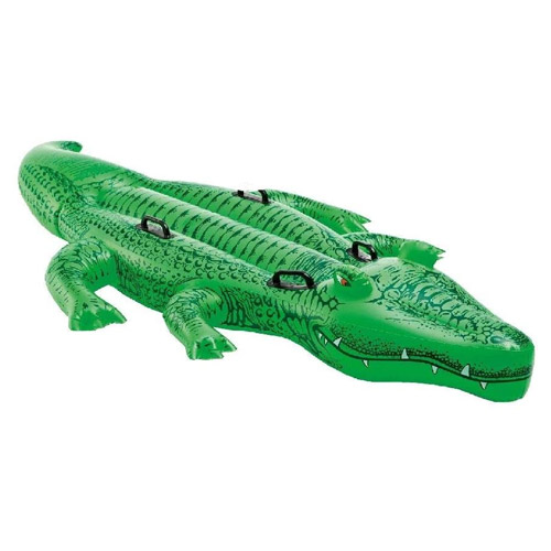 A fun toy for children is the Intex inflatable children's seat to float on the water with a crocodile depicted.