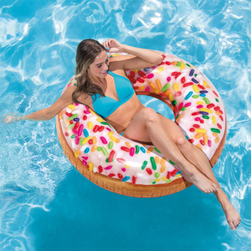 The candy donut floaties of the well known brand Intex are a real eye catcher on the water.